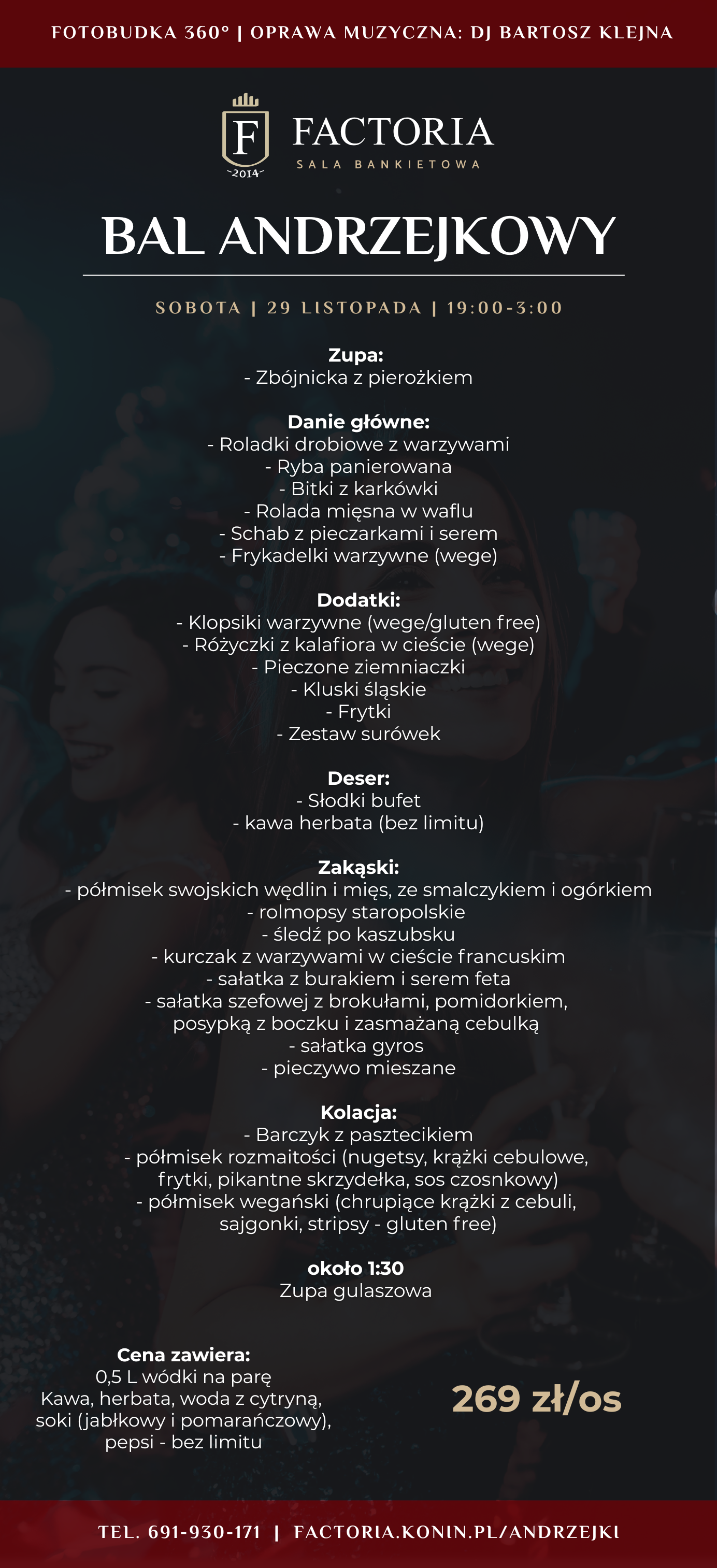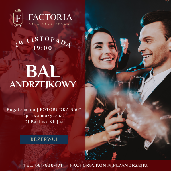 Serdecznie zapraszamy na bal Andrzejkowy 2025 w sali bankietowej Factoria w Koninie. Będzie to idealna okazja, aby spotkać się z przyjaciółmi, przy świetnej muzyce i wyśmienitym jedzeniu.